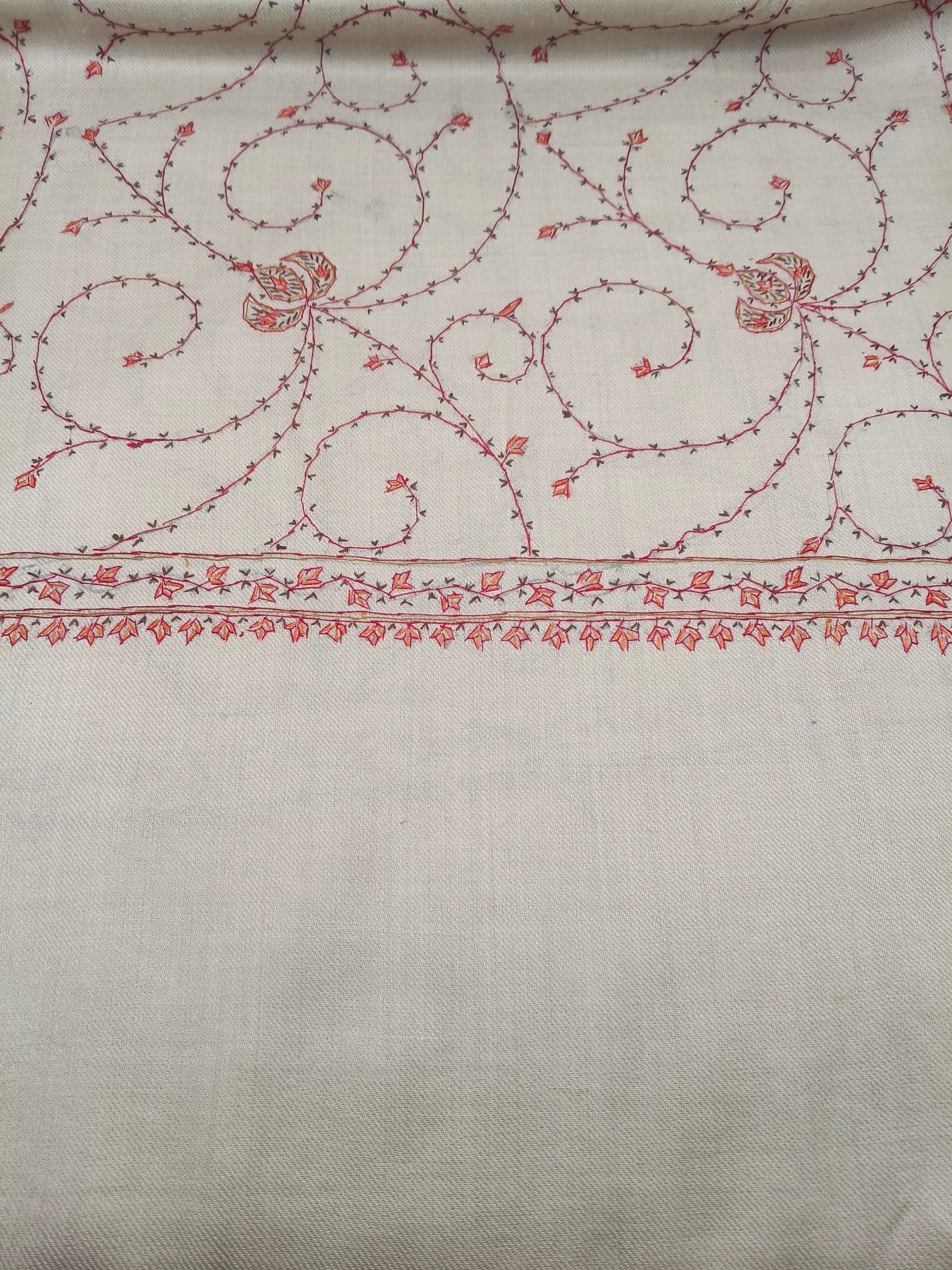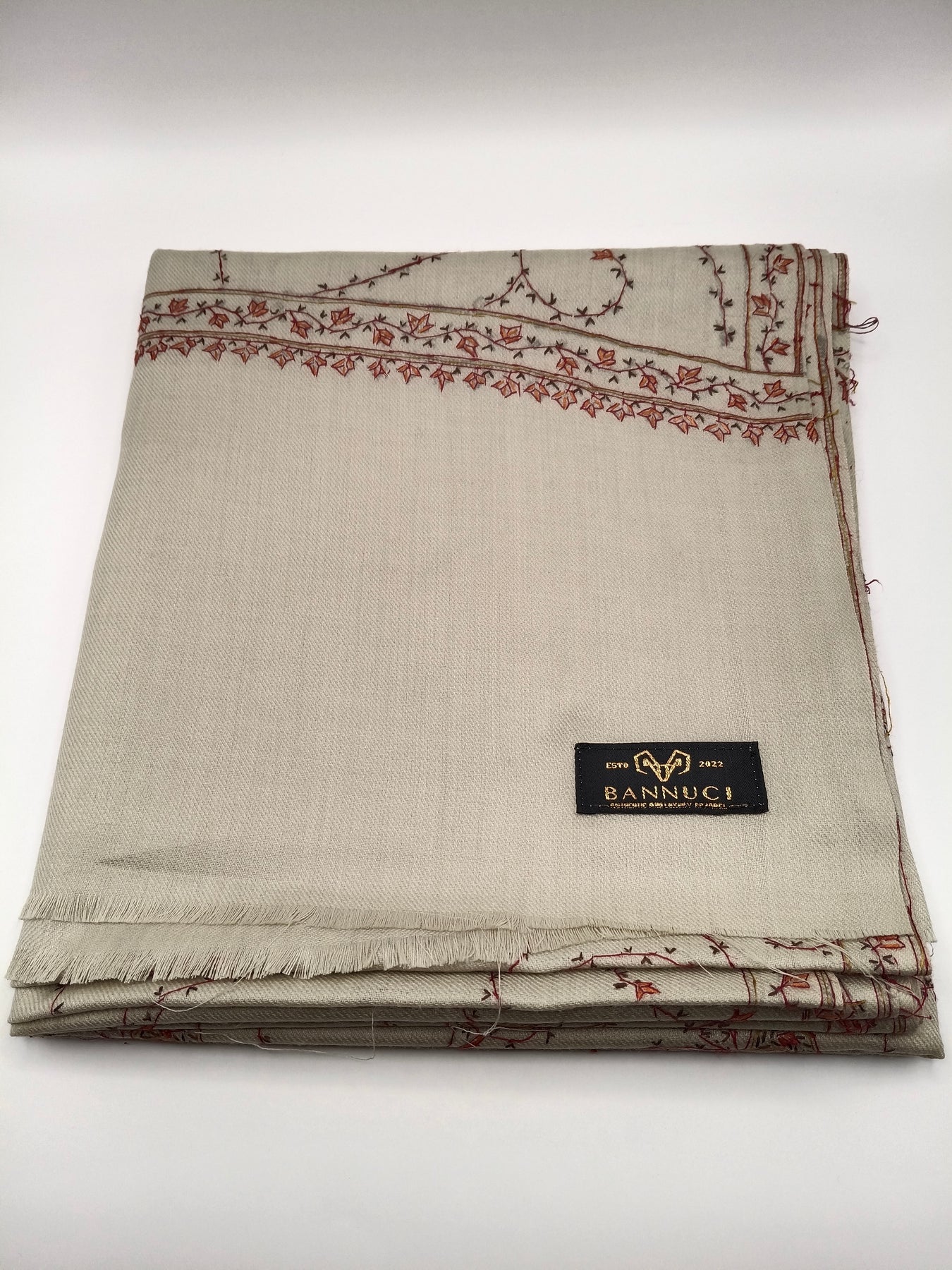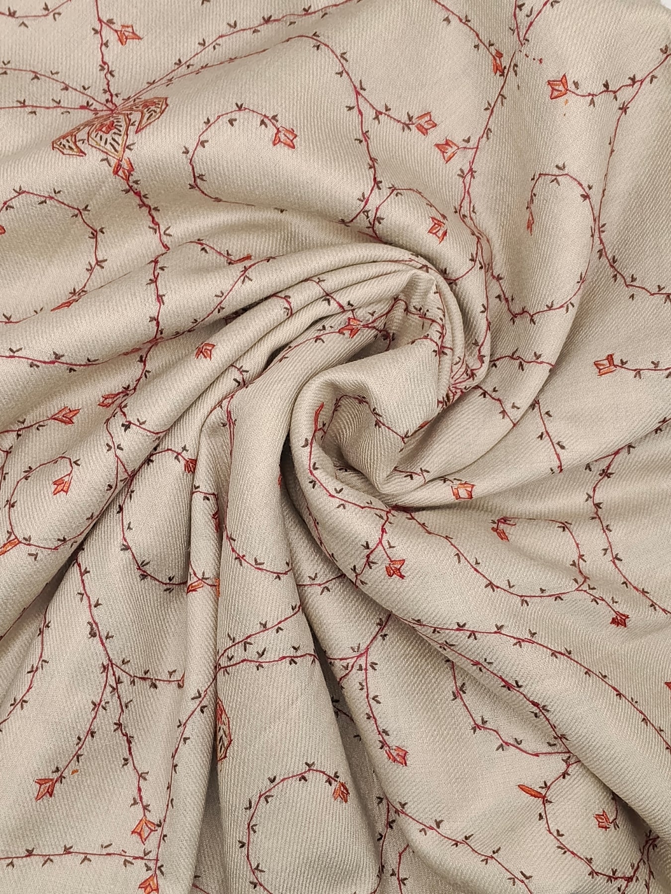 A Premium Quality Beige Full Embroidered Pashmina Cashmere Shawl