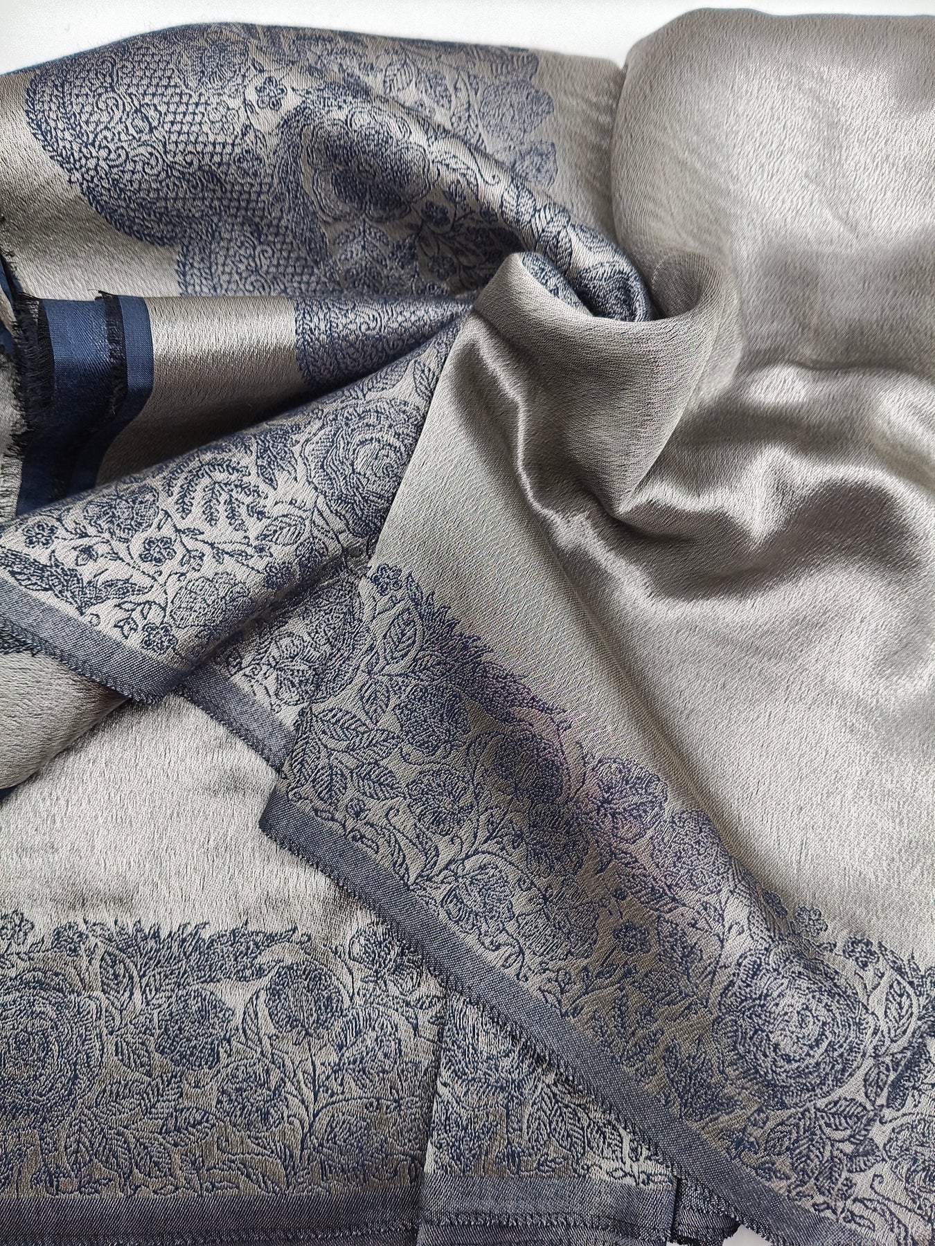 Premium Quality Blue Silver Reversible Moonlight Kani Pashmina Cashmere Shawl