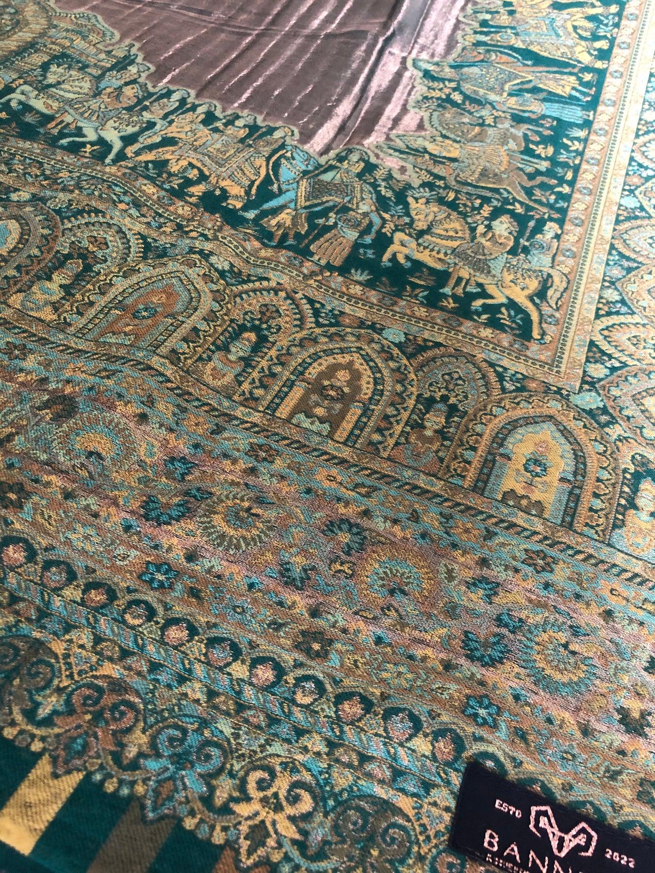 Premium Quality Moon Light Perrot Green Color Woven Pashmina Cashmere Shawl for Women