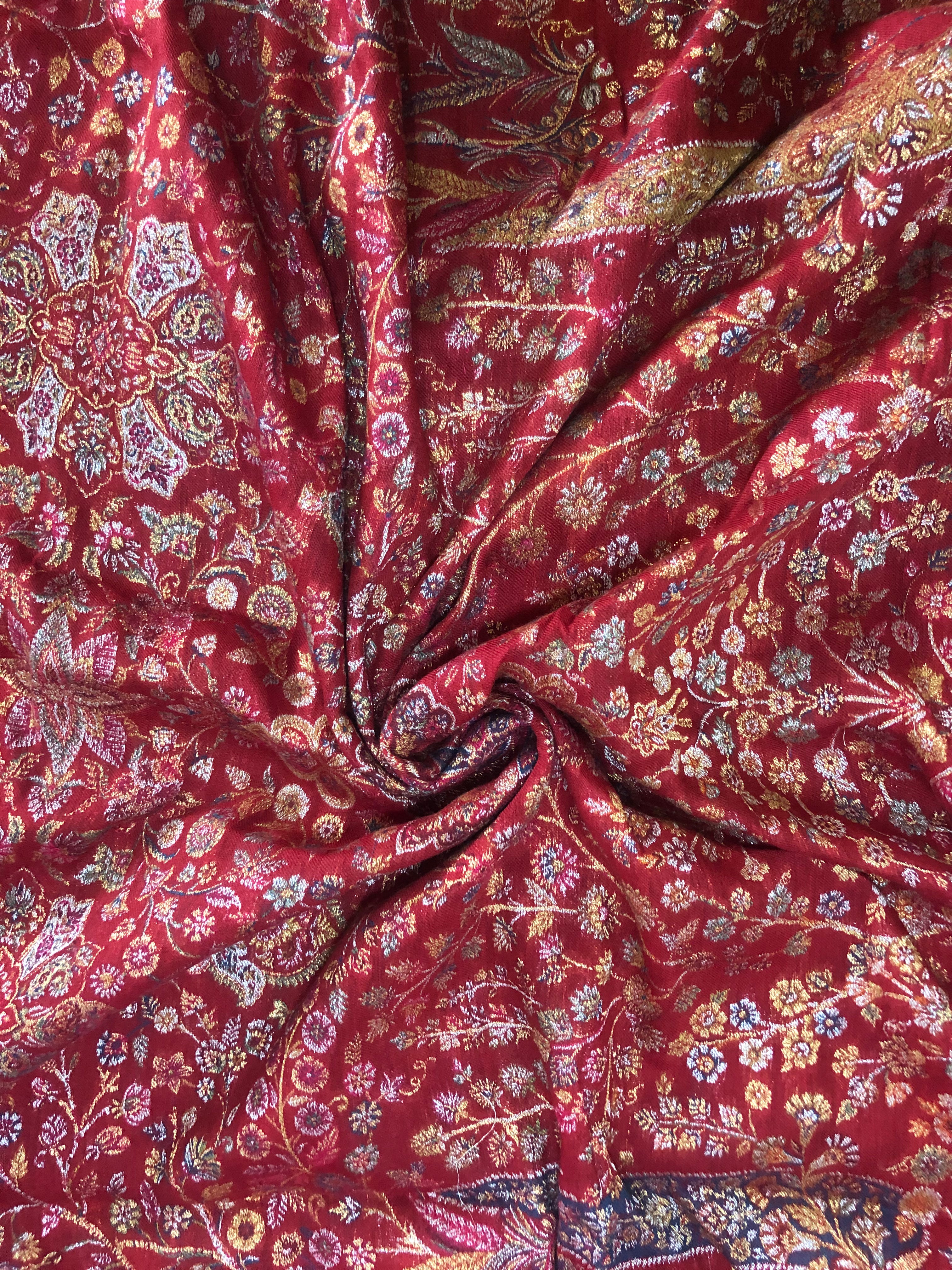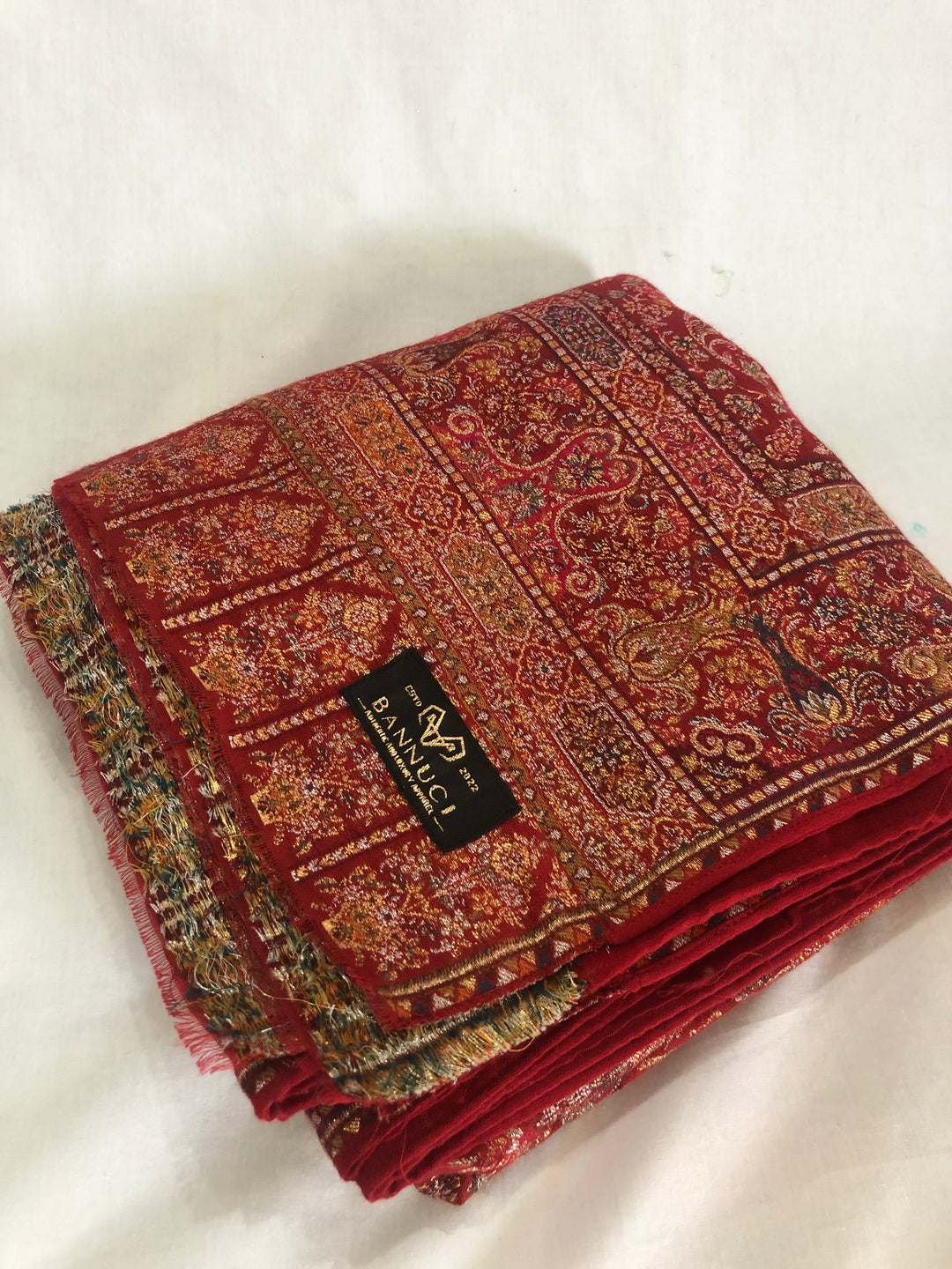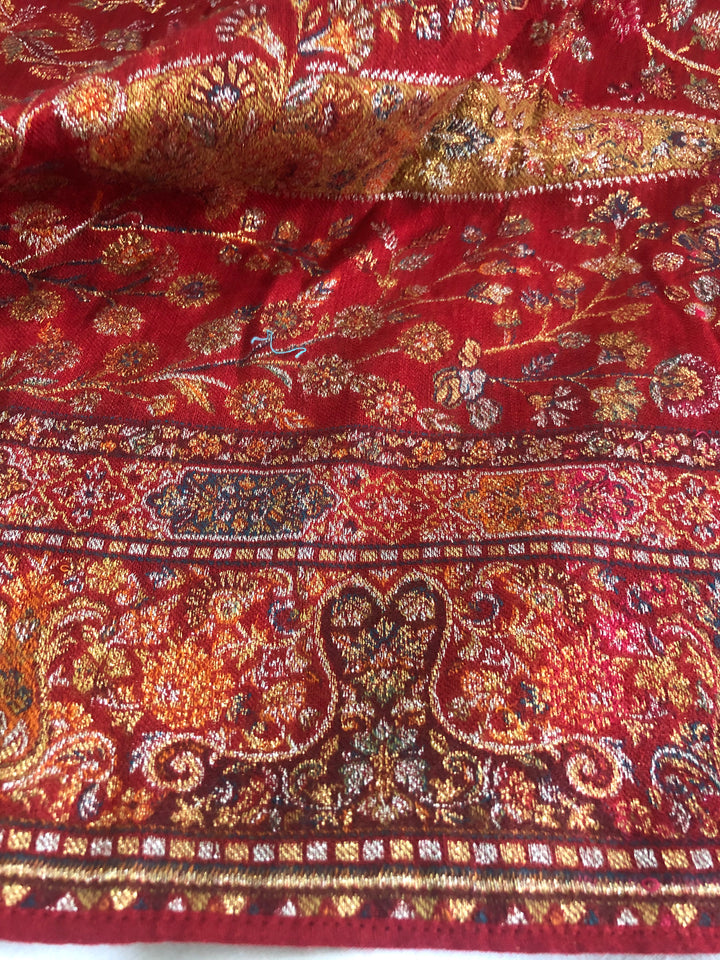 Premium Quality Red Zari Work Pashmina Cashmere Shawl