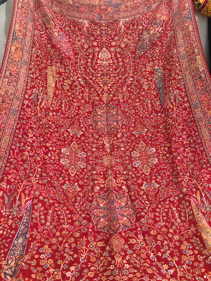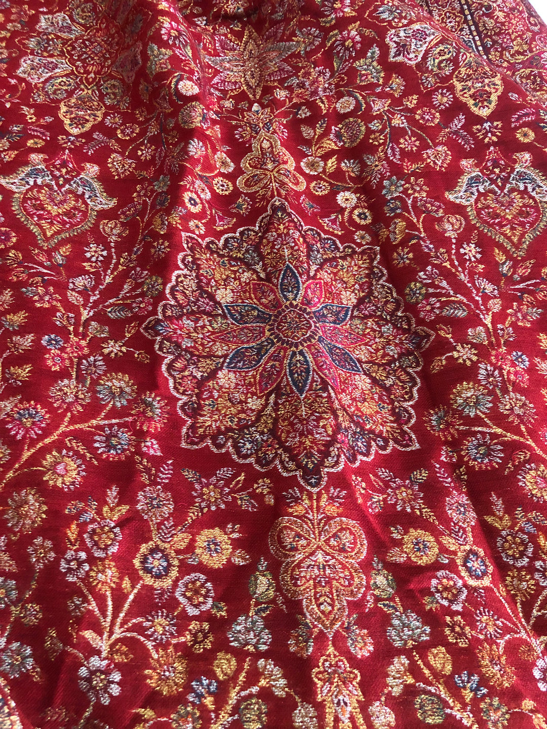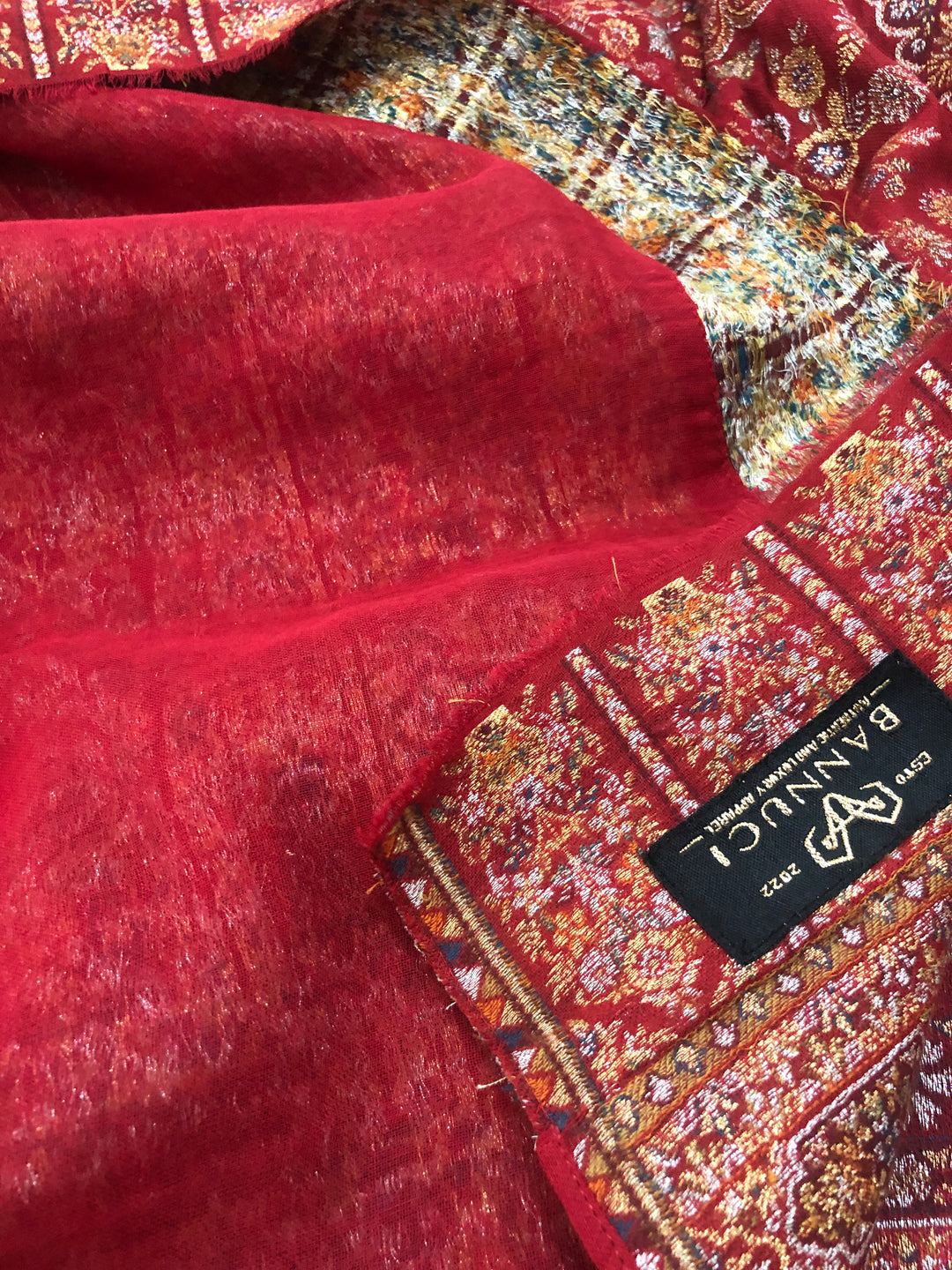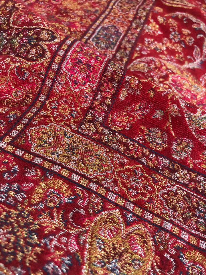 Premium Quality Red Zari Work Pashmina Cashmere Shawl