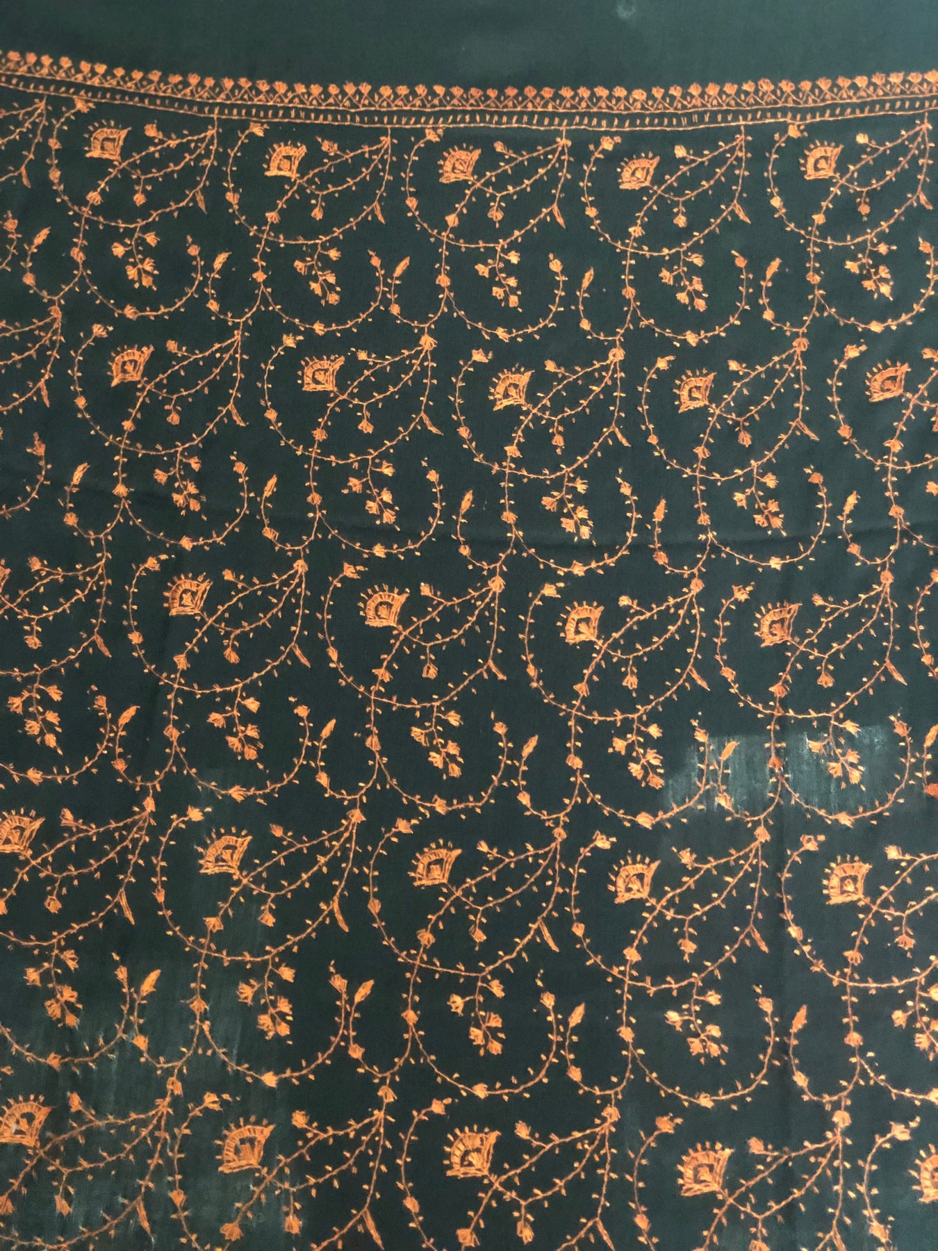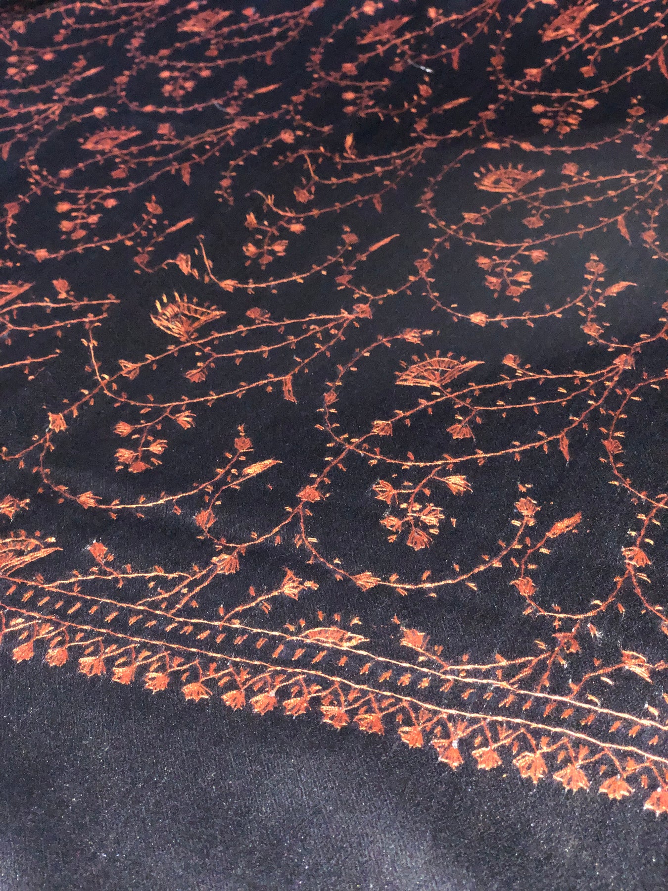 Premium Quality Orange Embroidered Black Pashmina Cashmere Shawl