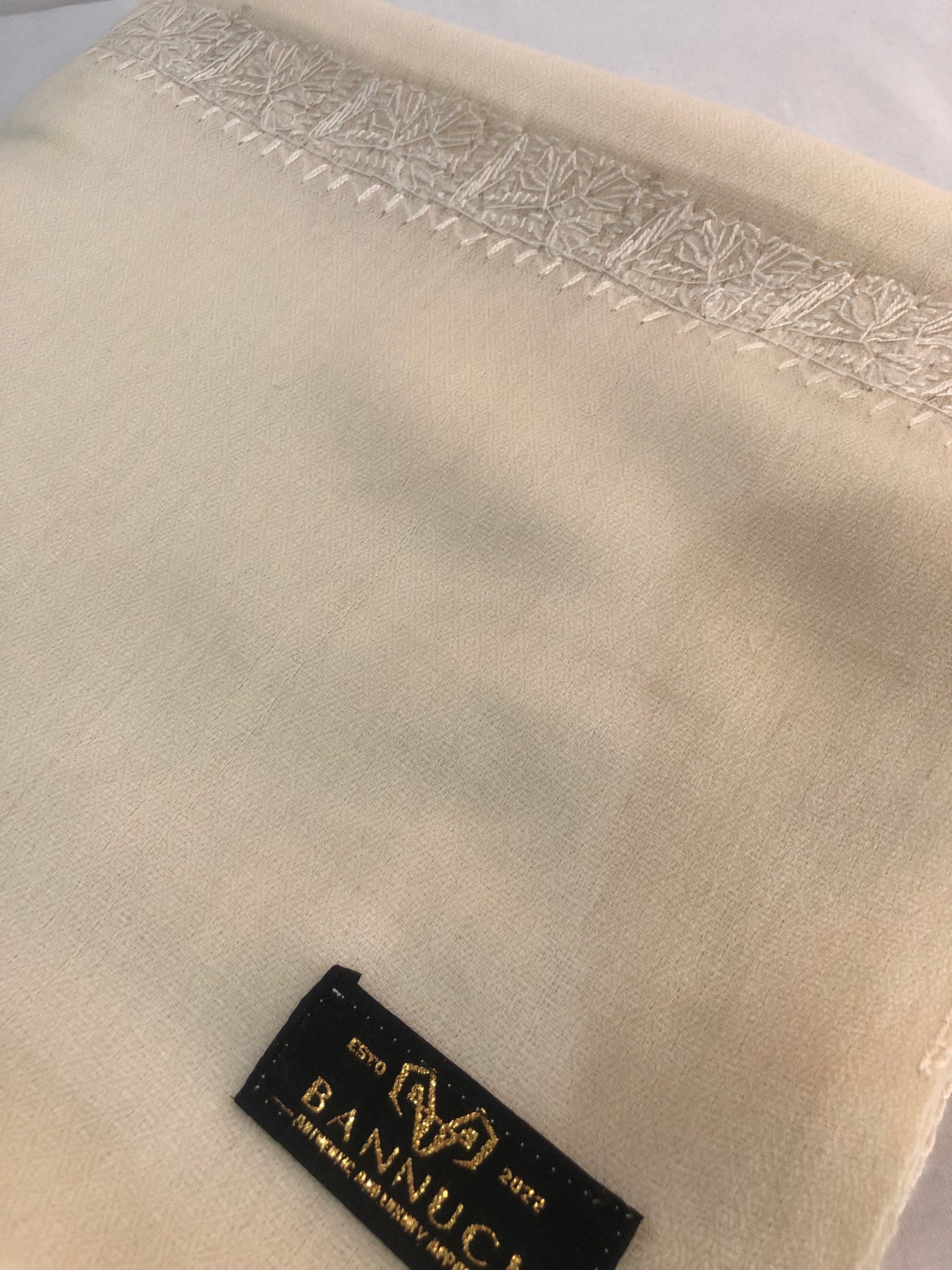 Premium Quality Off White Hand Embroidered Pashmina Cashmere Shawl