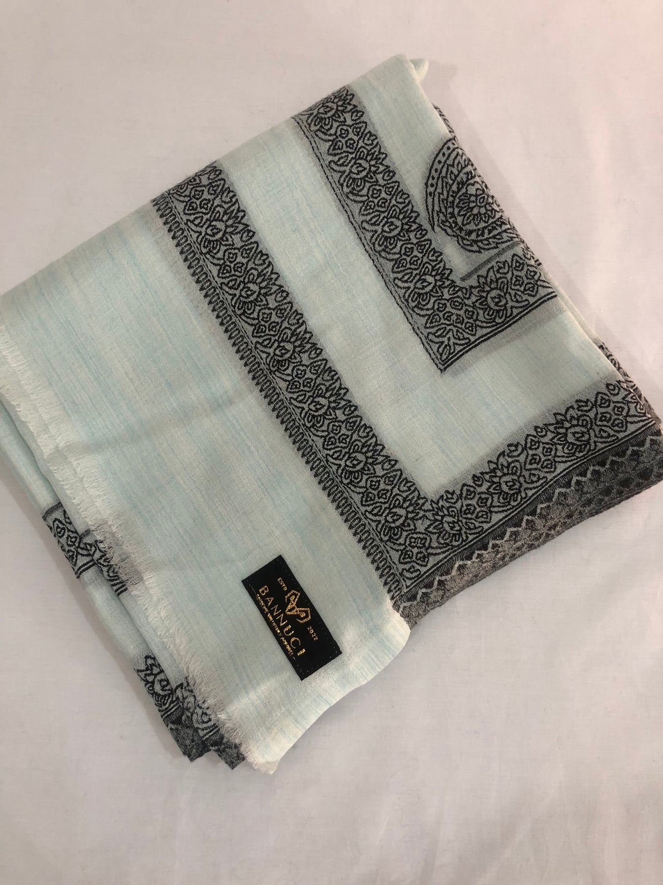 Premium Quality Sky Blue Pattern Pashmina Cashmere Shawl